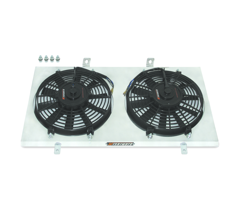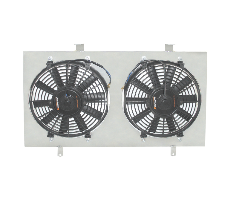 The Mishimoto Nissan 240SX S13 aluminum fan shroud kit is the perfect match for our radiators.Mishimoto fan shrouds are made for a direct OEM fit and include two 10-inch Mishimoto electric fans.All Mishimoto fan shrouds are significantly lighter and more durable than OEM fan shrouds and will notably improve engine cooling performance by delivering a significant amount of cooler air directly to the S13 radiator.Mishimoto fan shroud kits also safely secure the fan blades from any potential damage to other essential engine components.**** International Customers Welcome ****