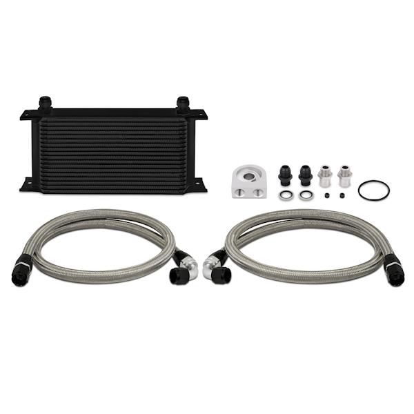 Enthusiasts who push their high-performance cars to the limit understand the importance of keeping their oil temperatures in control to prevent damage, or even seizure of the engine.The Mishimoto Universal 19 Row Oil Cooler Kit will extend the life of your engine by ensuring your essential high-wear engine components such as piston rings, skirts and cam bearings are sufficiently lubricated with cooler oil.The Mishimoto oil cooler kit is available with an optional thermostatic sandwich plate for safe daily-driver warm up and additional operating temperature control.Included with the purchase of the 19 Row Oil Cooler Kit are high-quality, stainless steel braided hose lines and all necessary adapters for universal installation.Offered with either a black or silver cooler, the Mishimoto Universal 19 Row Oil Cooler Kit includes a Lifetime Warranty, so you know quality is guaranteed!**** International Customers Welcome ****